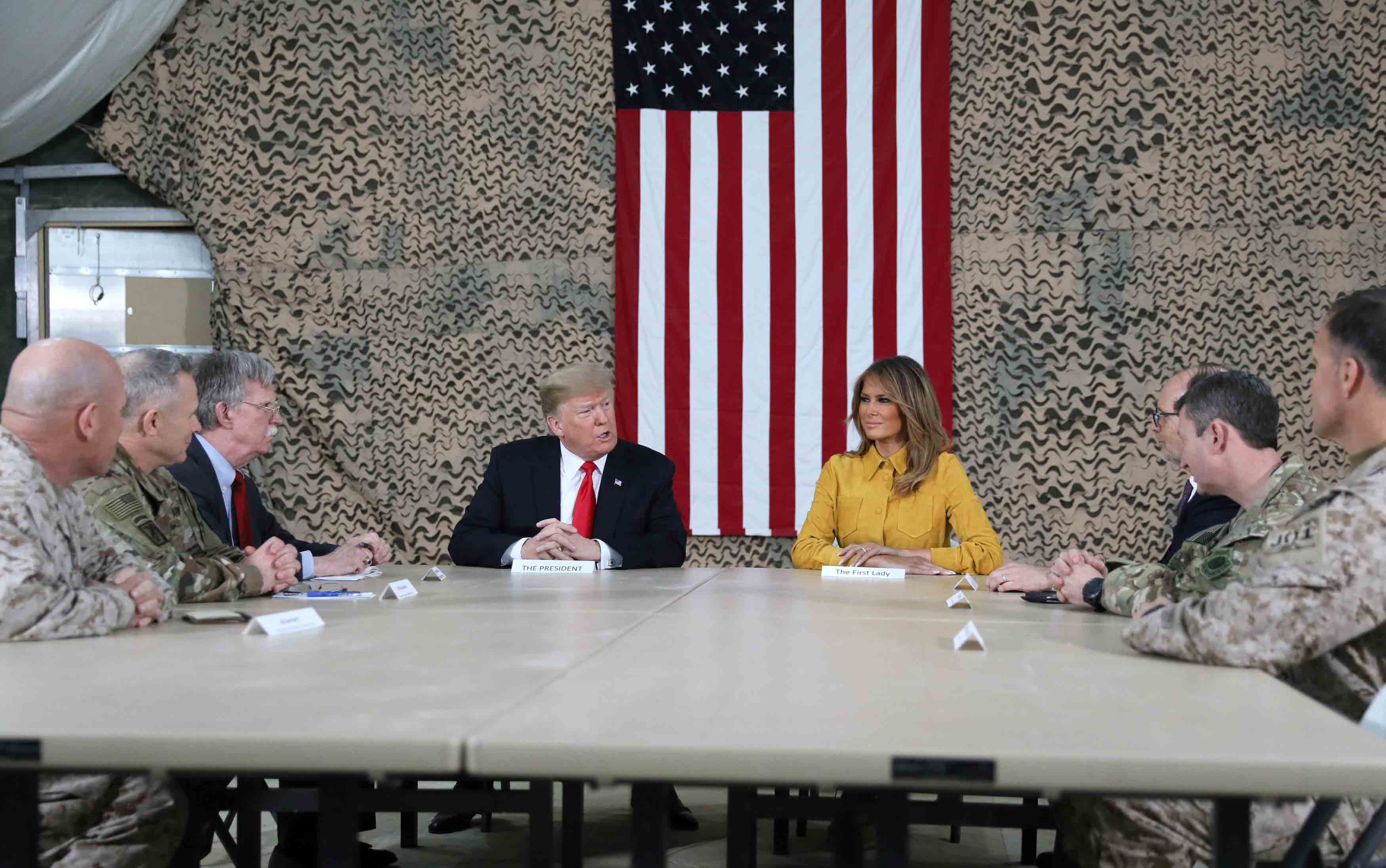 President Trump meets military leaders during an unannounced visit to Al Asad Air Base in Iraq on December 26, 2018. (Reuters / Jonathan Ernst)