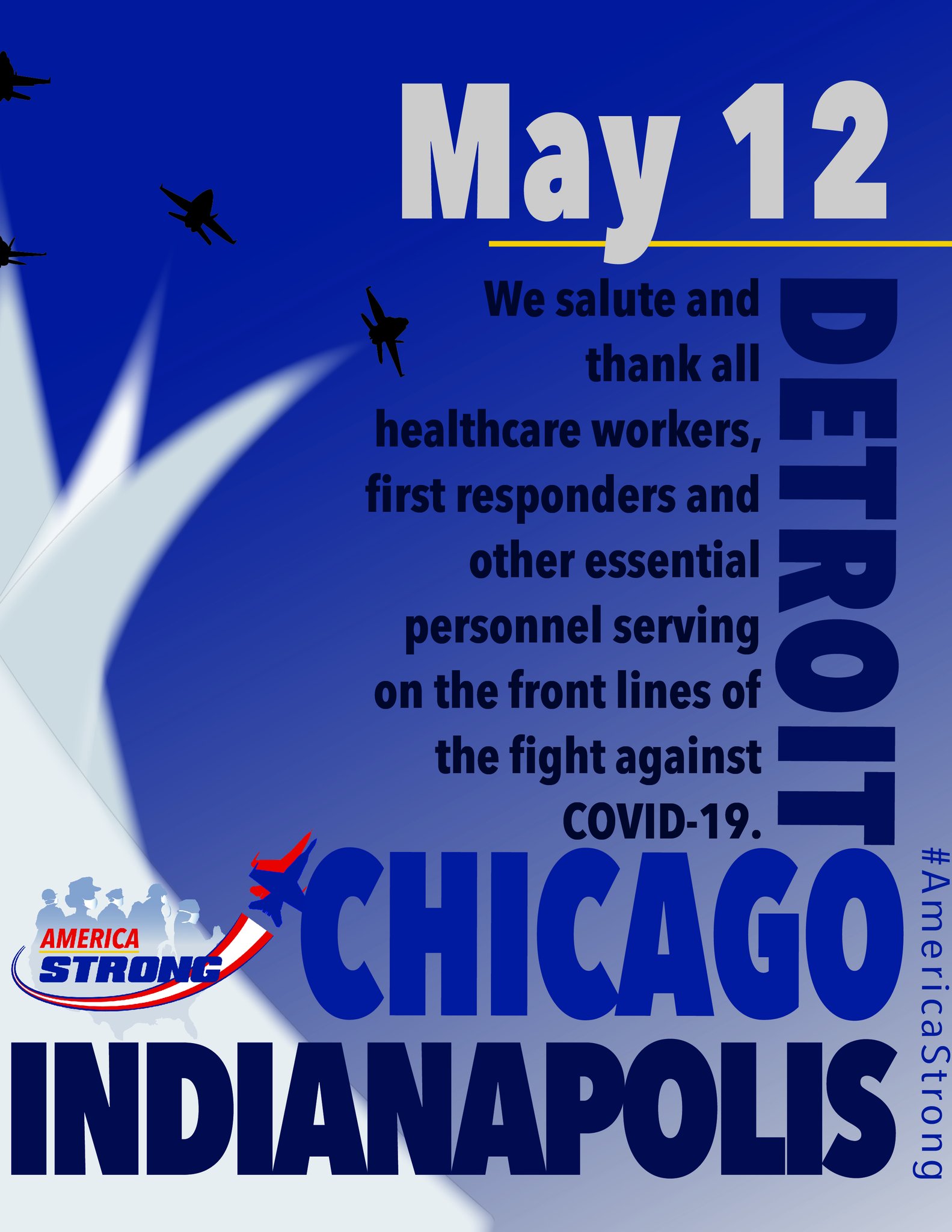#Detroit, #Chicago, and #Indianapolis your Blue Angels are heading your way this Tuesday! Check back tomorrow for routes and overhead times. Stay home and stay safe!#AmericaStrong #InThisTogether #HealthcareHeroes