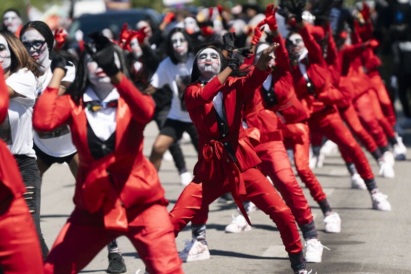 Members of the Empire Dance Company perform during the 95th annual Bud Billiken Parade along South Martin Luther King Jr. Drive in Bronzeville on Saturday.