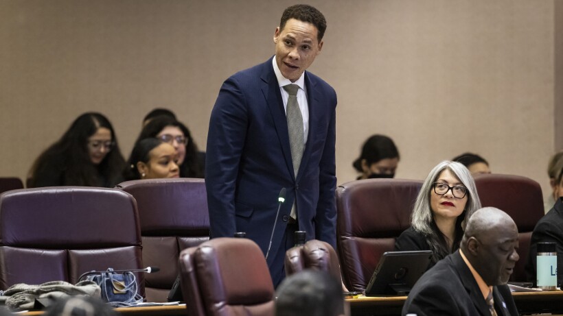 Ald. Matt Martin speaks during a City Council meeting last year. City employees and Chicago police officers participating in extremist groups would face discipline and firing under a proposed ordinance from Martin.
