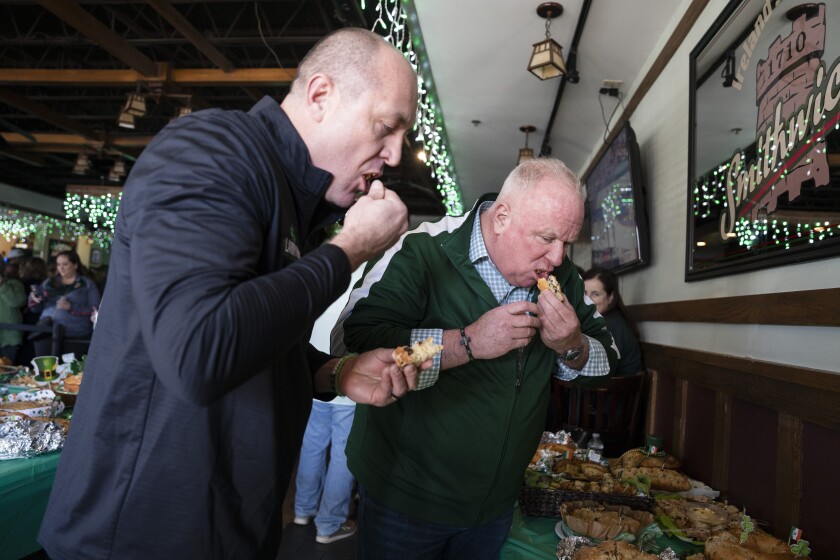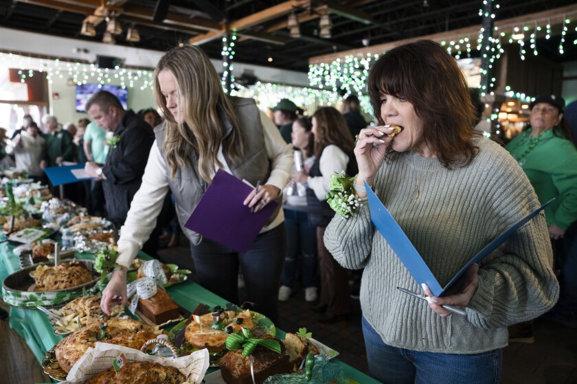 Walsh and 19 other judges sampled the traditional Irish dish, made with flour, baking soda, salt and buttermilk. A whopping 121 loaves were entered, most of which contained raisins — largely an American addition, according to several bakers. The entries were also adorned with vibrant green decor, including ribbons, figurines, beads and clover-shaped lights.